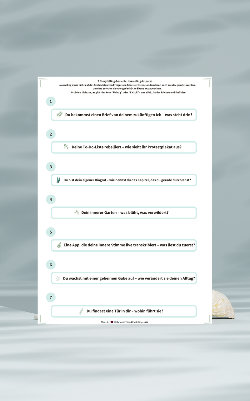 Für alle, die innerlich reisen möchten. Ohne Druck. Mit Gefühl. Diese 7 Impulse sind wie kleine Wegweiser – sie helfen dir, dich durch Geschichten selbst besser zu verstehen.